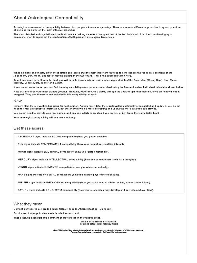 Astrological Compatibility Calculator Western System Psychicscience Org